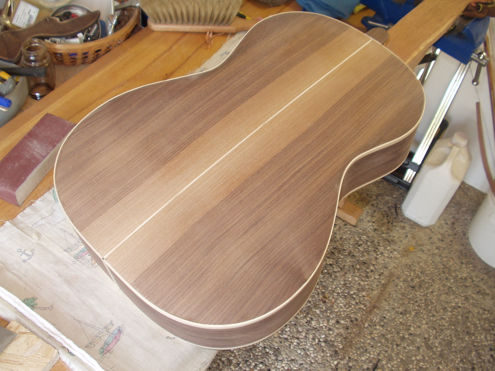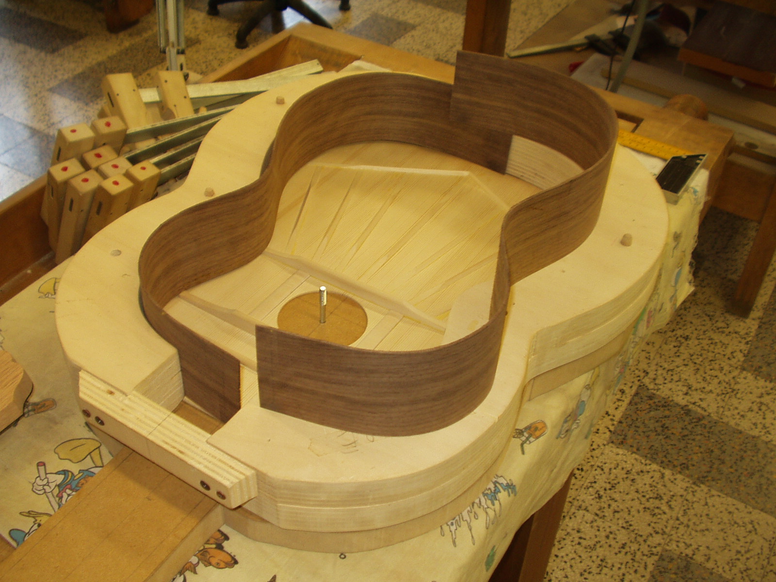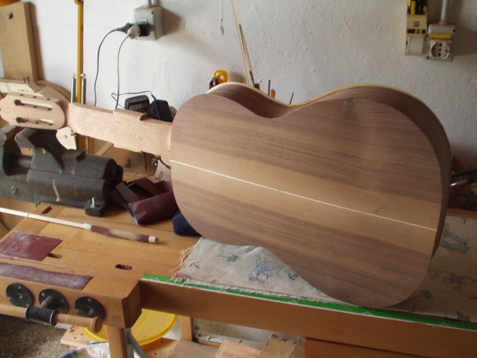 La successiva Mostra di Liuteria del 2012 mi ha visto partecipare con l’ulteriore realizzazione dedicata a “Molly” (questa nuova amica è un pastore tedesco femmina adottata dal canile dopo che Queen è passata a miglior vita); delle tre chitarre costruite, la “Molly n. 3″ è senz’altro la migliore, vuoi per gli ottimi materiali utilizzati (tavola armonica del 1980, fasce e fondo in noce “Canaletto”, manico in cedrella e tastiera in ebano “Makassar”) vuoi per la migliorata perizia del sottoscritto; alla sopra citata mostra Molly è stata suonata in pubblico dal Maestro Francesco Dodaro, insegnante presso l’Ateneo della Chitarra; anche un noto concertista milanese, che mi ha chiesto di provarla per qualche giorno, ha avuto parole di particolare apprezzamento.